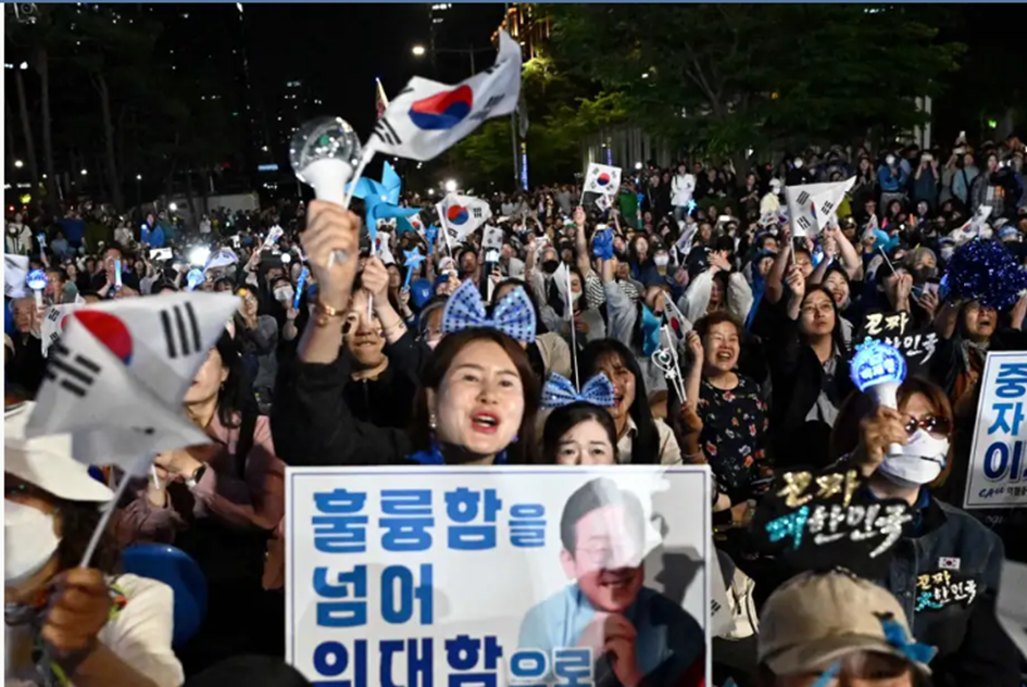 Candidat du Parti démocrate de Corée, le libéral Lee Jae-myung, qui a remporté 49,42 % des voix, a même dû prononcer son discours de victoire derrière une vitre pare-balles, entouré de policiers.