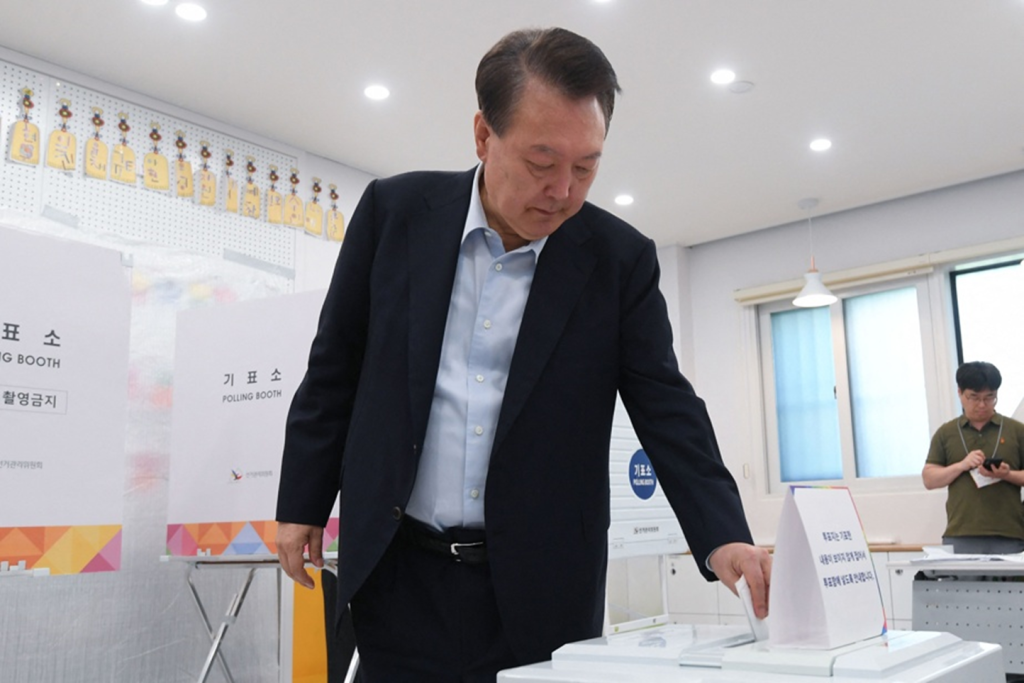 Le président déchu de la Corée du Sud, Yoon Suk-yeol, a voté dans un bureau de vote de Séoul, mardi.