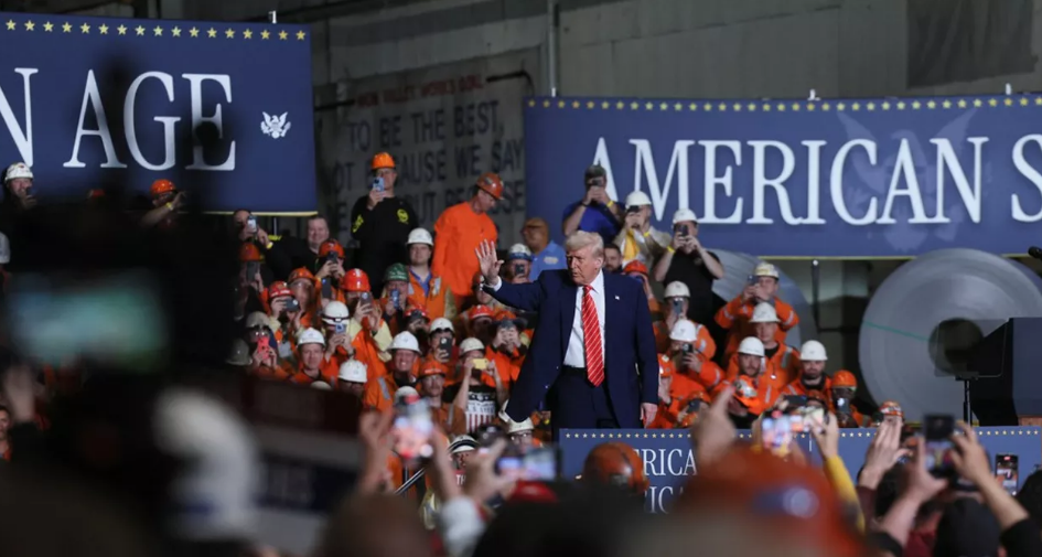 Donald Trump avait profité d’une visite dans une usine sidérurgique en Pennsylvanie pour annoncer le doublement des droits de douane. (REUTERS/Leah Millis)