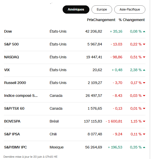 Le Dow Jones a ainsi fini en baisse de 0,10% à 42.171,66 points, le Nasdaq Composite en hausse de 0,13% à 19.546,27 points et le S&P 500 en repli de 0,03 % à 5.980,87 points.