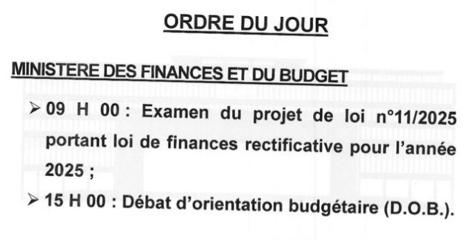 Le même document précise qu’à 15 heures, les parlementaires poursuivront avec le Débat d’orientation budgétaire (D.O.B.)