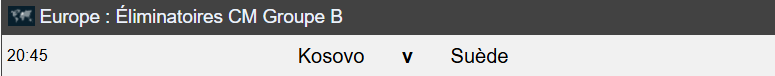 Quelles sont les probabilités du pronostic Kosovo Suède ?
