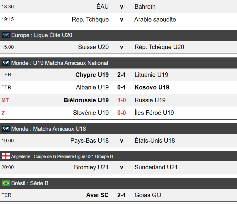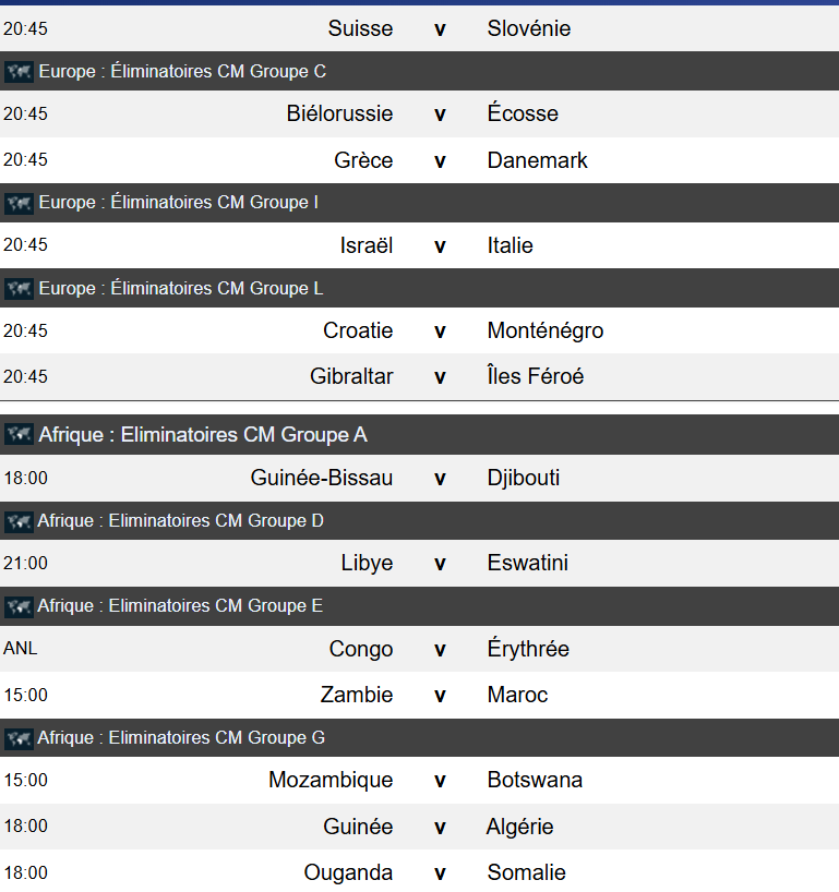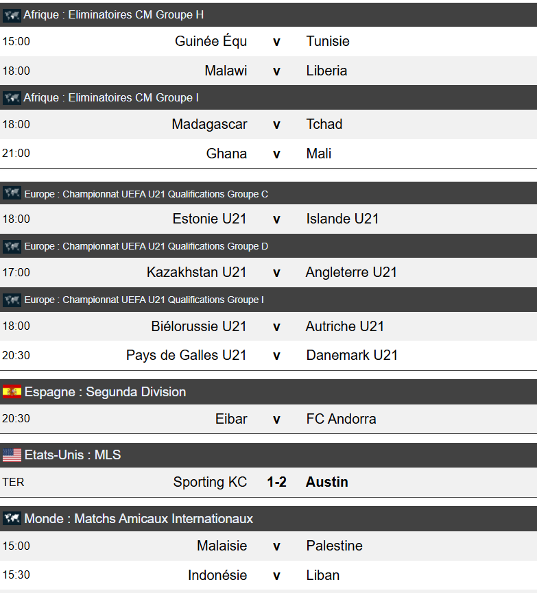 FOOT:programme ,resultats & pronostics du lundi 08 Septembre 2025