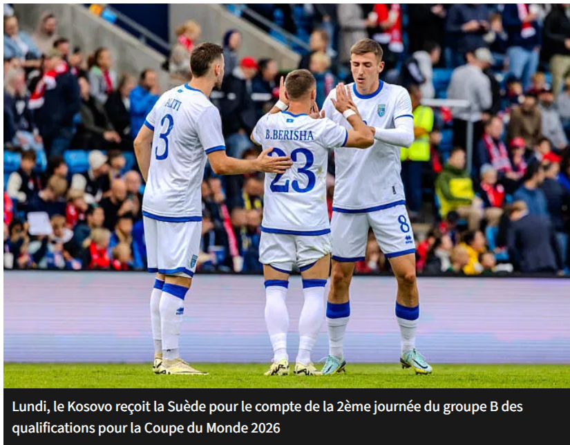 La Suède, qui avait battu le Kosovo en 2021 lors des Eliminatoires de la Coupe du Monde (0-3 et 3-0), retrouve cette sélection ce lundi 8 septembre à 20h45 au Stadiumi Fadil Vokrri à Pristina. Le Kosovo a très mal débuté ces Qualifications pour le Mondial 2026 en s’inclinant très lourdement en Suisse (4-0) ce vendredi soir lors de cette 1ère journée. Le Kosovo avait réussi le pari de monter en Ligue B de la Ligue des Nations après sa double victoire sur l’Islande (2-1 et 1-3) et d’enchainer 2 performances face à l’Arménie (5-2) et les Comores (4-2) à l’issue de deux rencontres amicales en juin dernier.