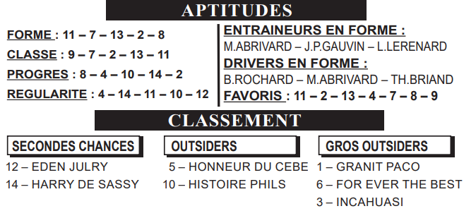 RFERENCE ET PASSE DE LA COURSE 2024 Arrivée officielle : 15 – 12 – 2 – 10 – 5 – 11 – 8 Temps : 03’17”68