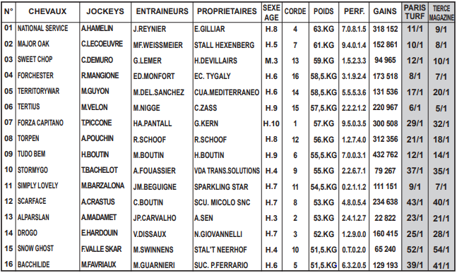 parcours proposé. Il visera une place sur le podium, tout comme SWEET CHOP (3), qui vient de faire forte impression
