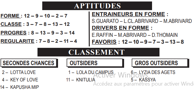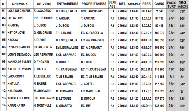 Elle ne doit pas être négligée au moment du choix, tout comme LOTTA LOVE (2), en grande forme.