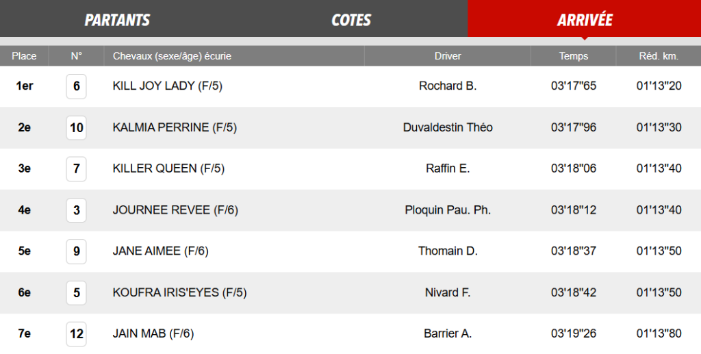 REFERENCE ET PASSE DE LA COURSE Arrivée officielle 2024 : 6 – 10 – 7 – 3 – 9 – 5 – 12