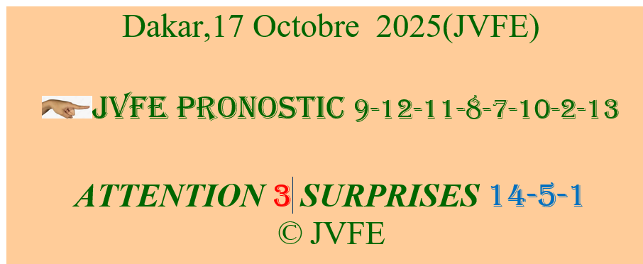 2 thoughts on ““4+1” DU VENDREDI 17 OCTOBRE 2025 PARIS-VINCENNES NOCTURNE – PRIX GUDRUN -14 CONCURRENTS – 4ème COURSE – ATTELE 60 000 EUROS ( ENV. 39 500 000 CFA ) – 2 700 METRES