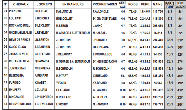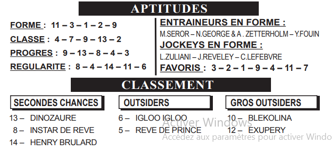 Enfin, DINOZAURE (13) fait preuve d’une belle régularité et ne doit pas être oublié au moment du choix.