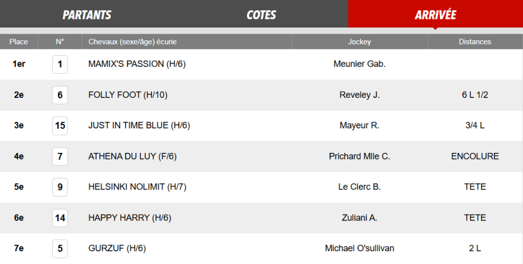 REFERENCE ET PASSE DE LA COURSE Arrivée officielle 2024 : 1 – 6 – 15 – 7 – 9 – 14 – 5