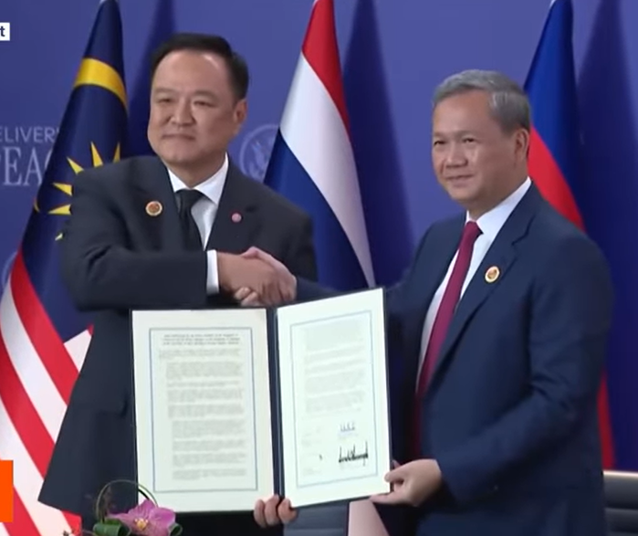 En attendant sa rencontre avec son homologue chinois jeudi à Séoul, le président américain a signé ce dimanche une série d’accords commerciaux avec des pays de l’ASEAN. Il a également co-signé une déclaration de cessez-le-feu entre la Thaïlande et le Cambodge.