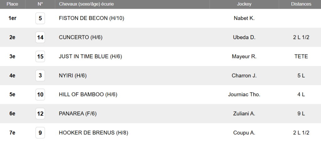 REFERENCE ET PASSE DE LA COURSE Arrivée officielle 2024 : 5 – 14 – 15 – 3 – 10 – 12 – 9