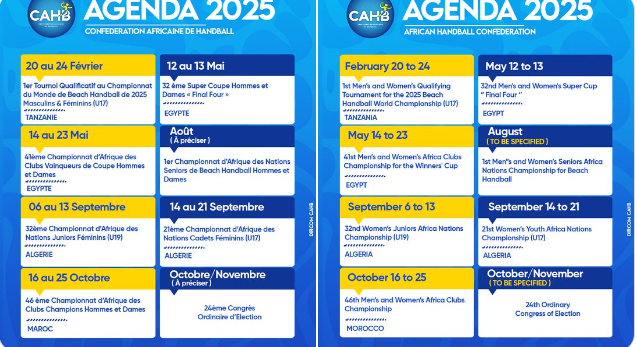 Le Beach handball débarque en force dans le calendrier 2025 de la CAHB avec la Première édition du Championnat d’Afrique des Nations Seniors Hommes et Dames de Beach Handball.