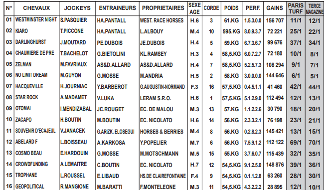 PRONOSTIC PMU “QUARTE” DU MARDI 18 NOVEMBRE 2025-CHANTILLY – PRIX DE BEAUVAIS-16 CONCURRENTS – 5ème COURSE – PLAT50 900 EUROS (ENV. 33 500 000 F CFA) – 1.600 METRES