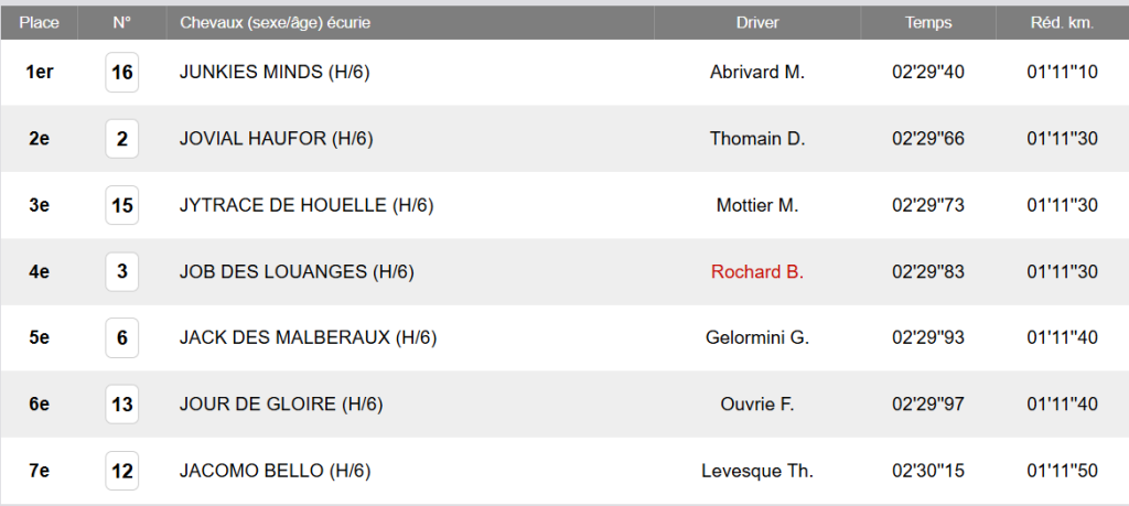 REFERENCE ET PASSE DE LA COURSE Arrivée officielle 2024: 16 – 2 – 15 – 3 – 6 – 13 – 12