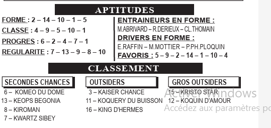 ARRÊT DES JEUX EST FIXÉ : 19h 05 mn DÉPART DE LA COURSE : 19h 15 mn
