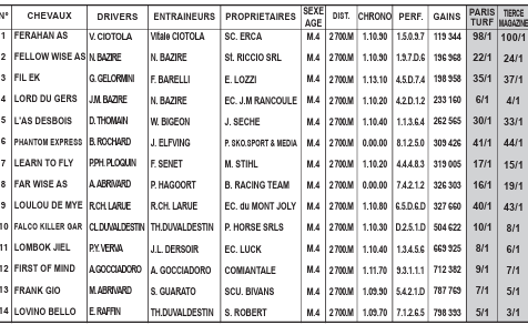 PRONOSTIC JVFE PMU ARL1 “TIERCE” DU SAMEDI 06 DECEMBRE 2025 PARIS-VINCENNES – PRIX OCTAVE DOUESNEL -14 CONCURRENTS – 4ème COURSE – ATTELE 120 000 EUROS ( ENV. 78 500 000 F CFA ) – 2 700 METRES