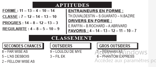 ARRÊT DES JEUX EST FIXÉ : 14h 05 mn DÉPART DE LA COURSE : 14h 15 mn