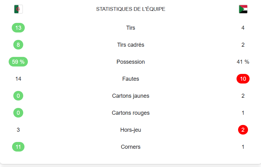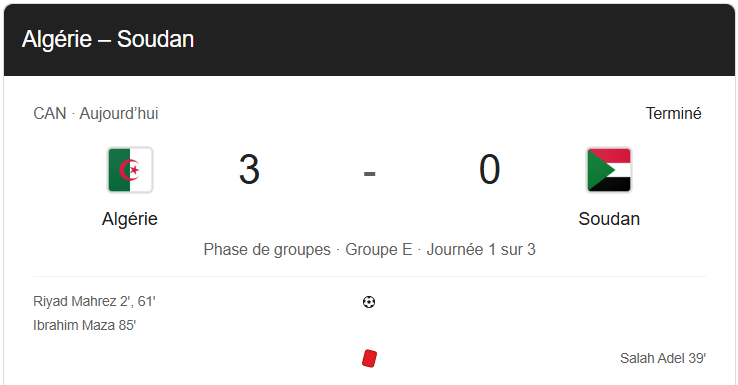 L’Algérie a frappé un grand coup pour son entrée en lice dans le Groupe B de la CAN 2025 en s’imposant largement face au Soudan. Le capitaine emblématique, Riyad Mahrez, n’a pas perdu de temps en ouvrant le score dès la 2e minute, mettant les Fennecs sur la voie royale. La situation s’est corsée pour les Soudanais à la 39e minute lorsque S. Al Hassan a été expulsé après un second carton jaune, laissant ses coéquipiers en infériorité numérique pour le reste de la partie.