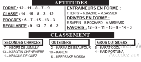 ARRÊT DES JEUX EST FIXÉ : 19h 05 mn DÉPART DE LA COURSE : 19h 15 mn