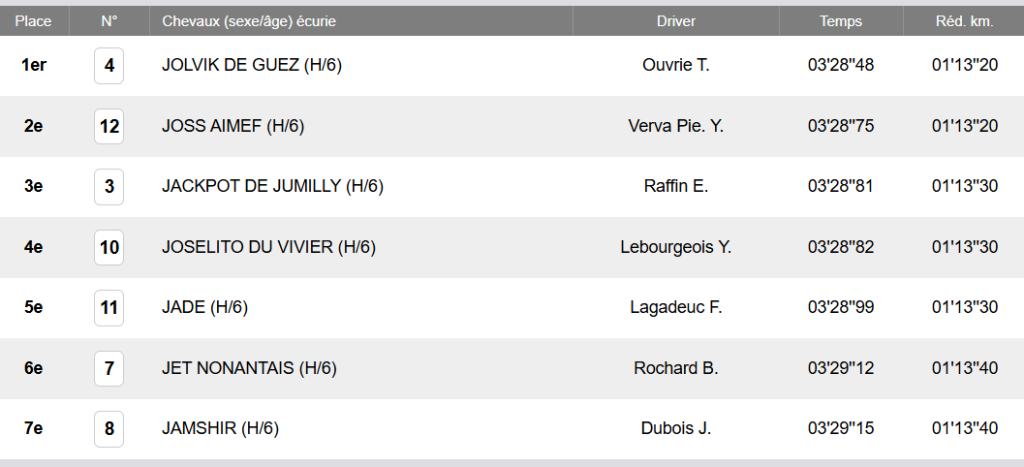 Passé en tête à l’entrée de la ligne droite, Jolvik de Guez (4), a prolongé courageusement son effort jusqu’au poteau.