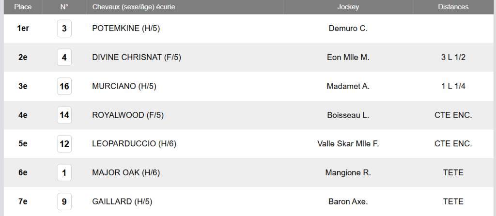 1-REFERENCE ET PASSE DE LA COURSE Arrivée officielle 2025: 3 – 4 – 16 – 14 – 12 – 1 – 9
