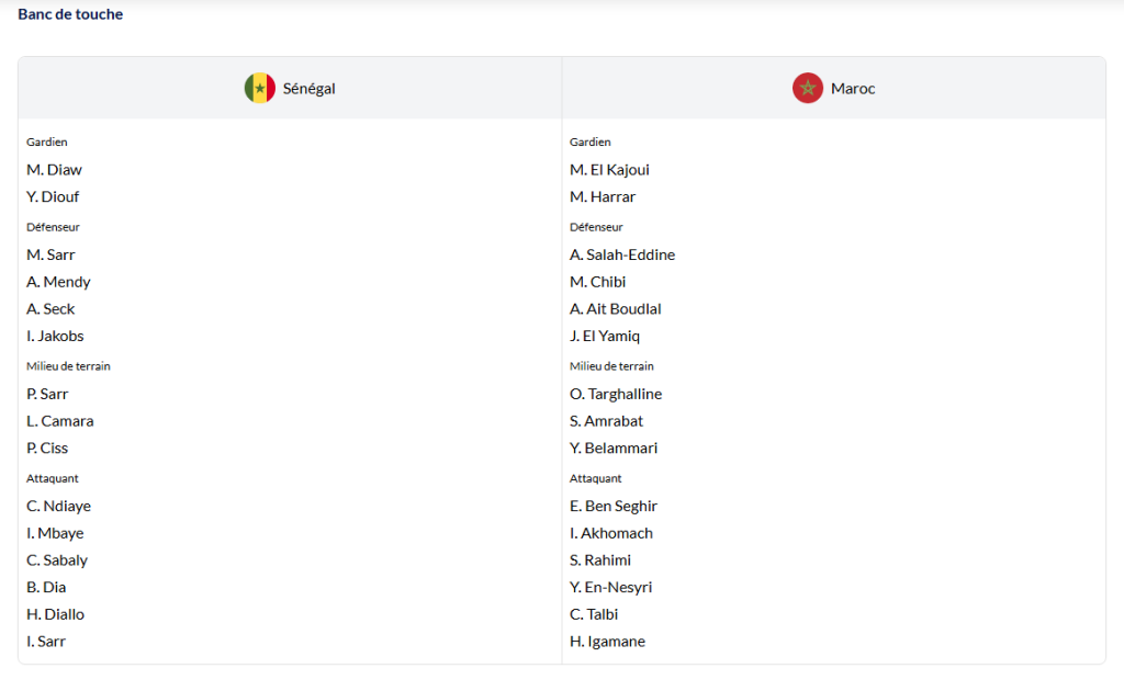 Composition de l’équipe du Sénégal,Sénégal-Maroc (19h GMT)