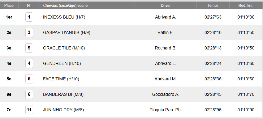 Après avoir négocié le dernier virage, en épaisseur, le n°1 Inexess Bleu reprend un départ à mi-ligne droite et n’a plus qu’à rallier le poteau en tête, s’imposant avec une marge évidente pour finir.