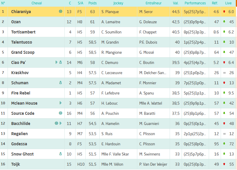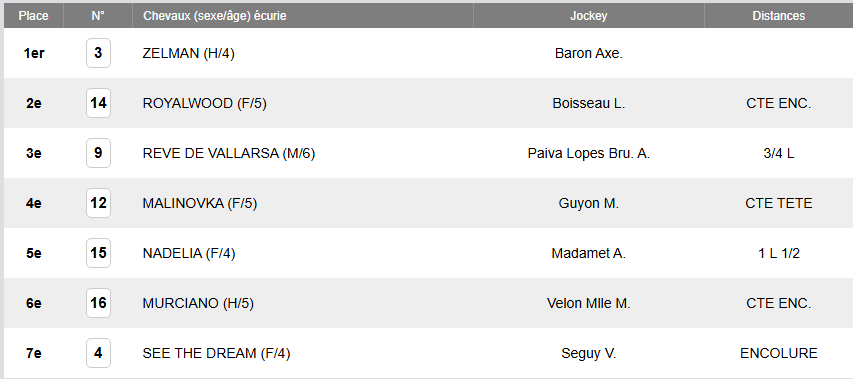 1-REFERENCE ET PASSE DE LA COURSE Arrivée officielle 2025: 3 – 14 – 9 – 12 – 15 – 16 – 4