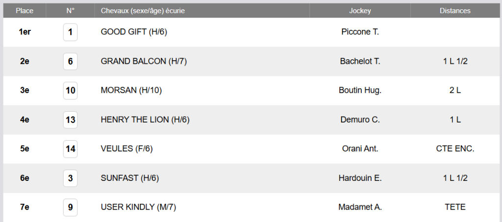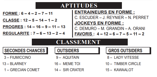 1-REFERENCE ET PASSE DE LA COURSE Arrivée officielle 2025: 1 – 6 – 10 – 13 – 14 – 3 – 9