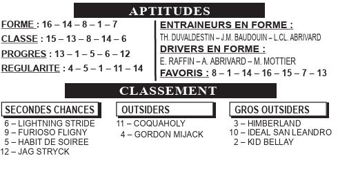 ARRÊT DES JEUX EST FIXÉ : 19h 05 mn DÉPART DE LA COURSE : 19h 15 mn