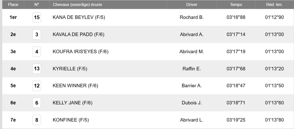 1-REFERENCE ET PASSE DE LA COURSE Arrivée officielle : 15 – 3 – 4 – 13 – 12 – 6 – 8