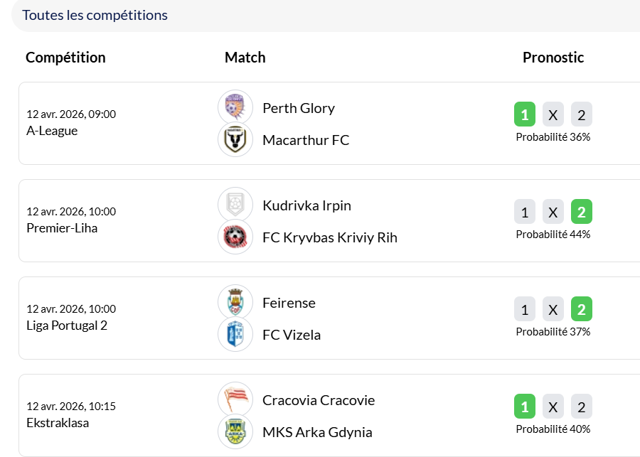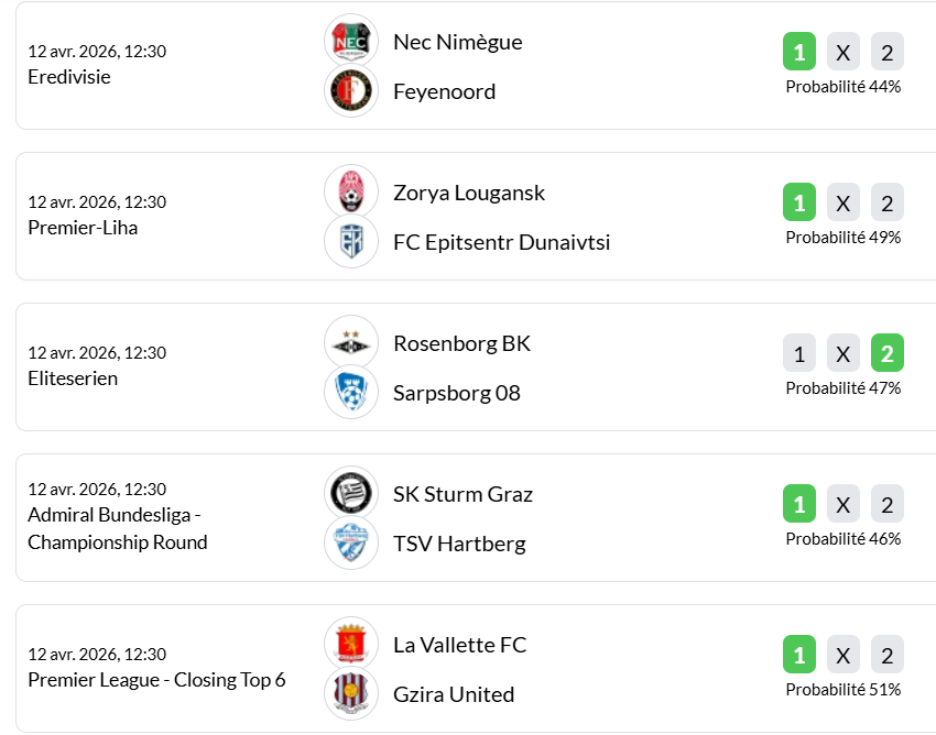 VSD JVFE SPORT LIVE : ACTUALITES RESULTATS PRONOSTICS& PROGRAMME DU 12 AVRIL 2026