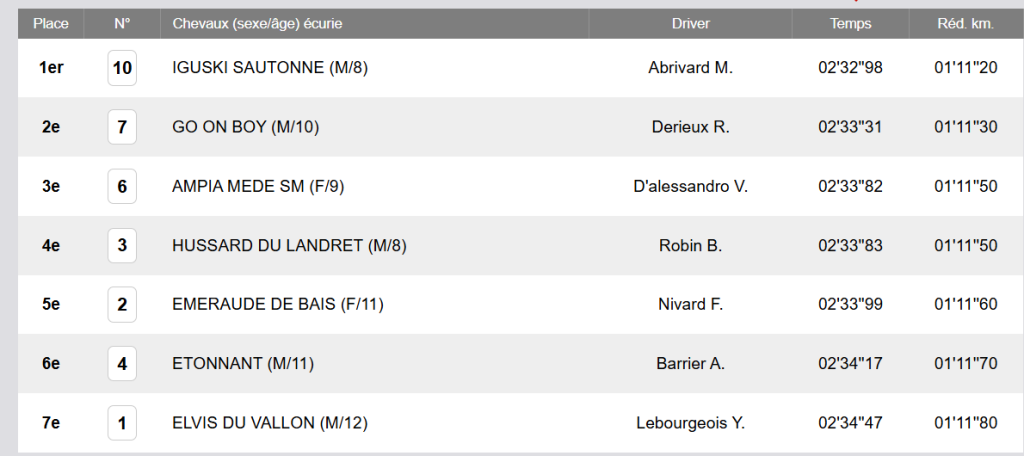 1-REFERENCE ET PASSE DE LA COURSE Arrivée officielle 2025 : 10 – 7 – 6 – 3 – 2 – 4 – 1