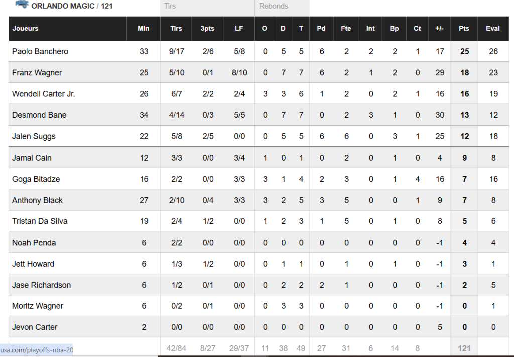 À l’arrivée, l’écart est très lourd (+31), et le Magic valide une troisième qualification consécutive en playoffs et affrontera les Pistons au premier tour, avec un premier match prévu dès dimanche à Detroit.
