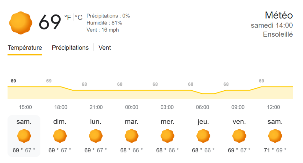 Au cours des prochaines 72 heures, un temps ensoleillé, voire dégagé par endroits, prédominera sur la majeure partie du territoire. Toutefois, durant les petits matins, des voiles nuageux seront observés sur les zones proches du littoral.
