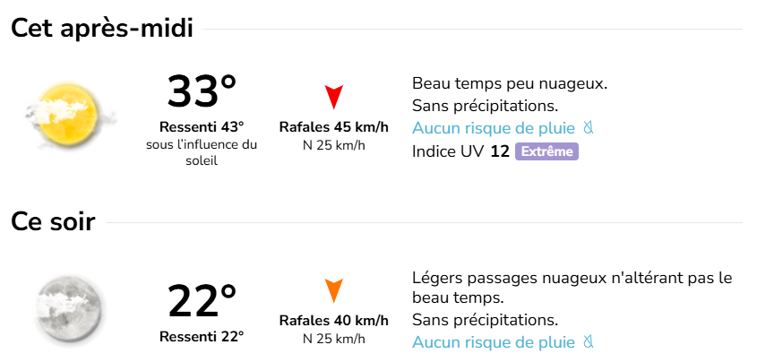 Vents : Ils soufflent du Nord au Nord-Ouest, restant faibles à modérés.