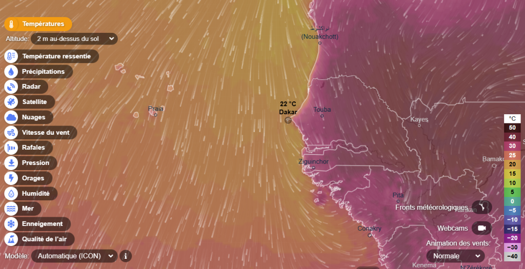 Températures à Dakar : Un temps clément avec des températures comprises entre 19°C et 26°C.