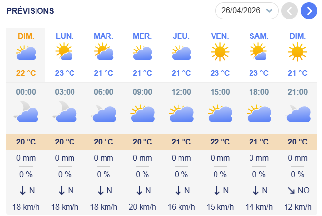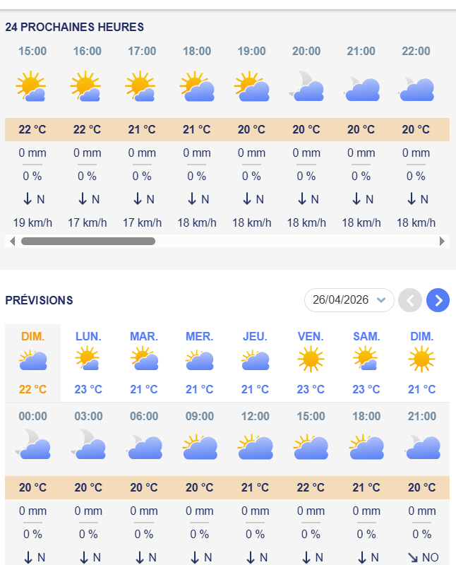 Alerte Météo: JVFE prévisions hebdomadaires du 25 avril 2026