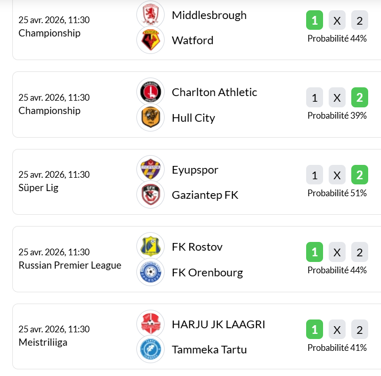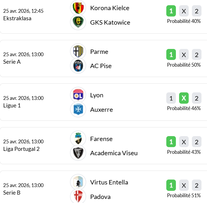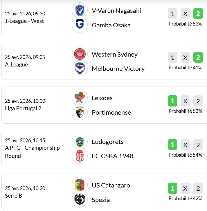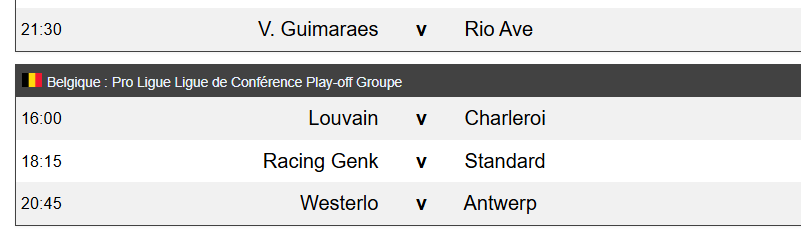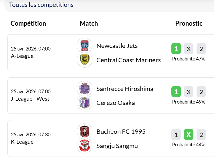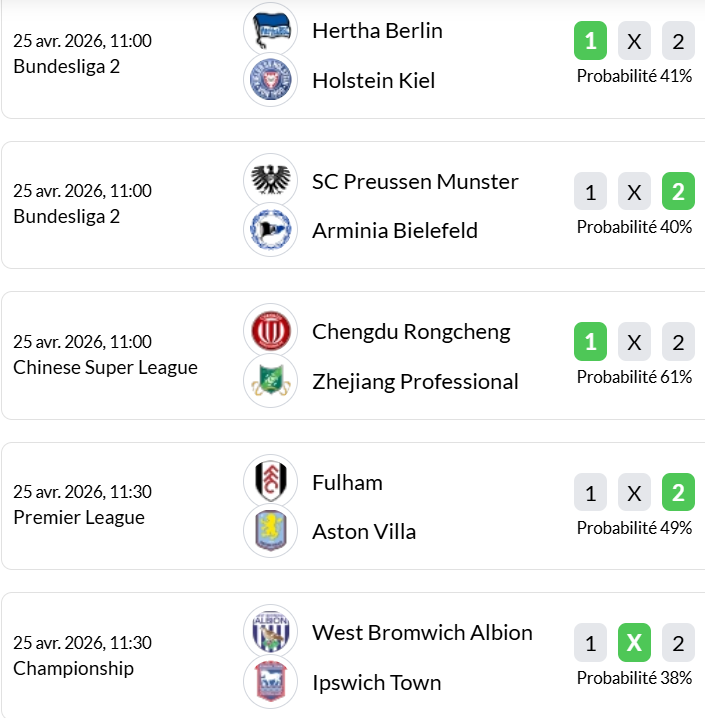 Matchs du jour (25 avril) :