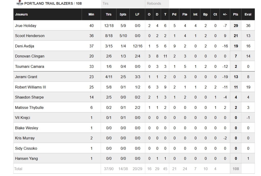 Tous les tirs sont trop courts, et ils offrent des possibilités de paniers faciles à San Antonio (108-97). A l’image d’Avdija, Portland ne parvient pas à répondre et les Spurs s’imposent finalement 120-108. Un succès qui leur permet de reprendre la main.